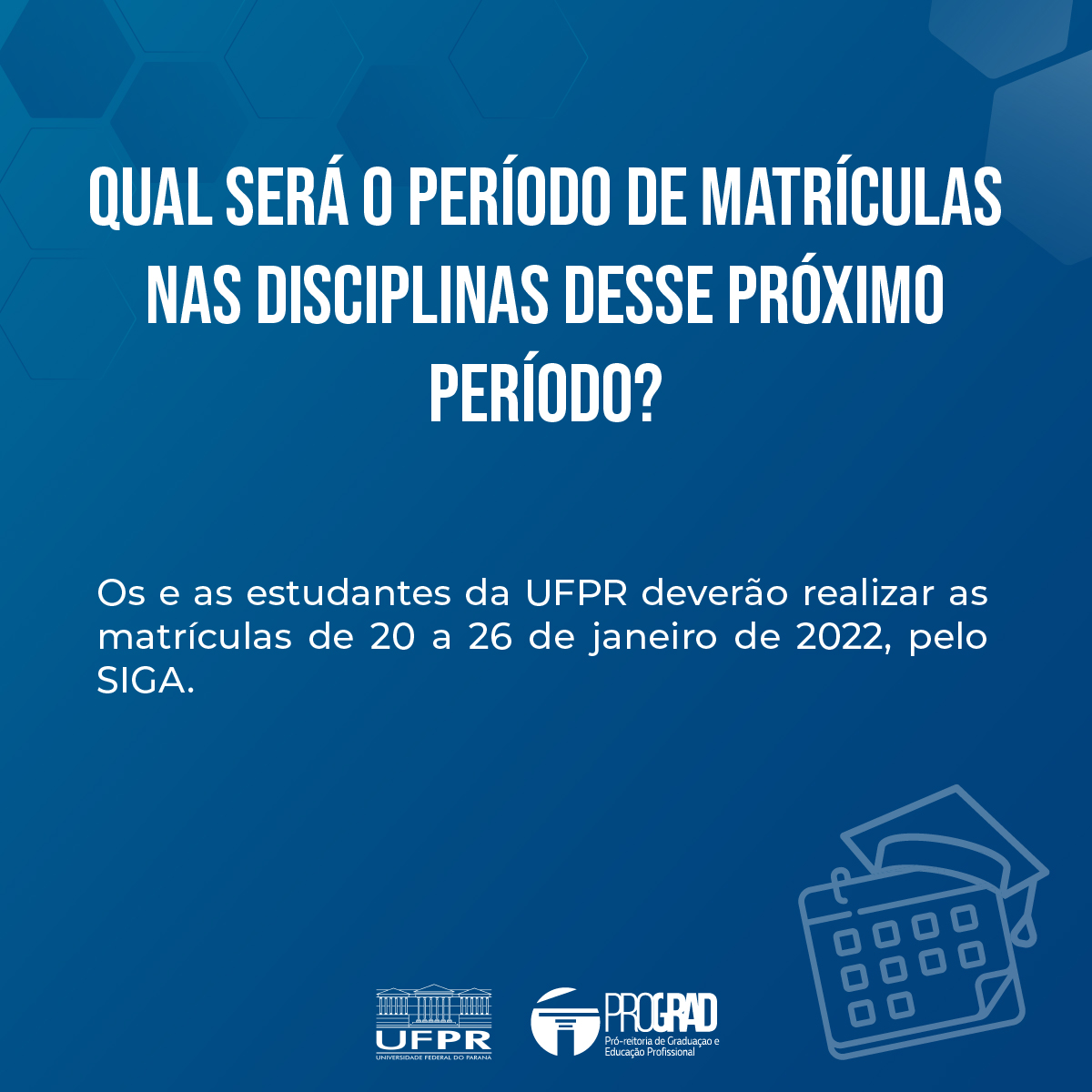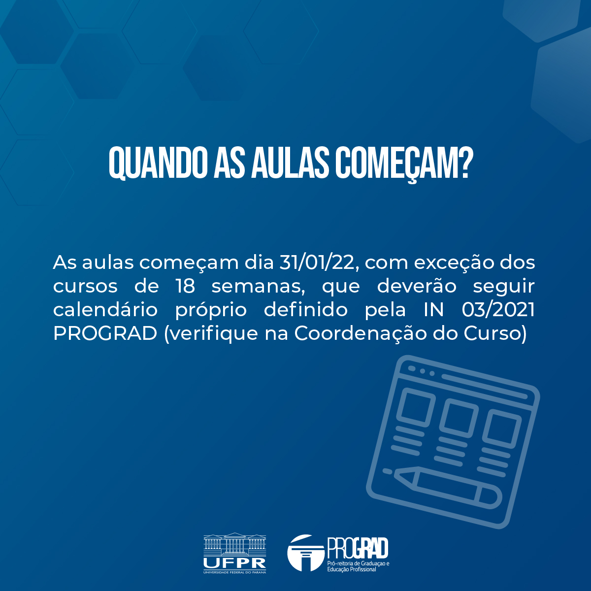 O primeiro semestre letivo de 2021 da Universidade Federal do Paraná está acabando! E a UFPR já se prepara para o segundo semestre letivo de 2021, que acontecerá em 2022. Você pode conferir todas as resoluções e o calendário completo aqui.