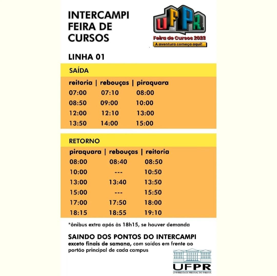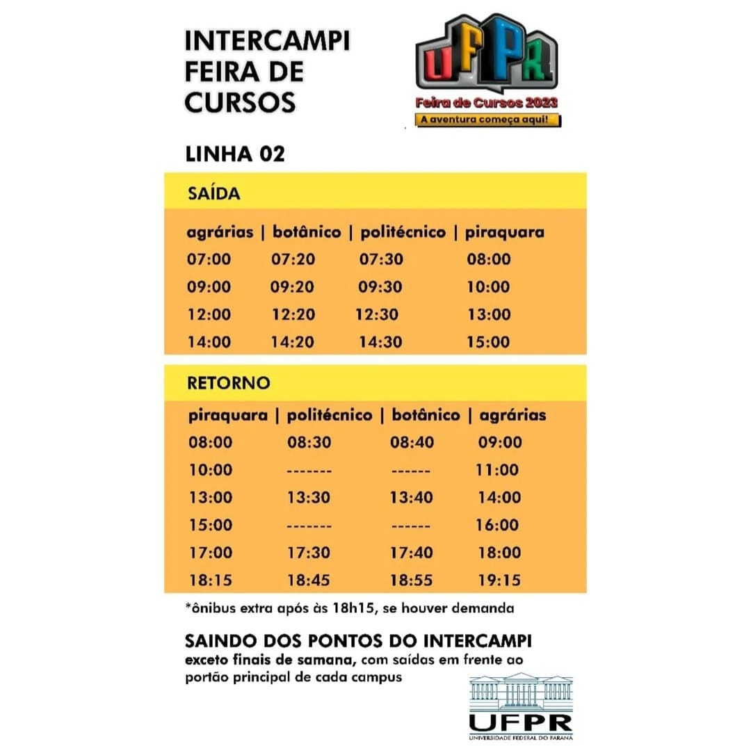 Confira na imagem em anexo o horário das linhas dos Intercampi especiais para a Feira: