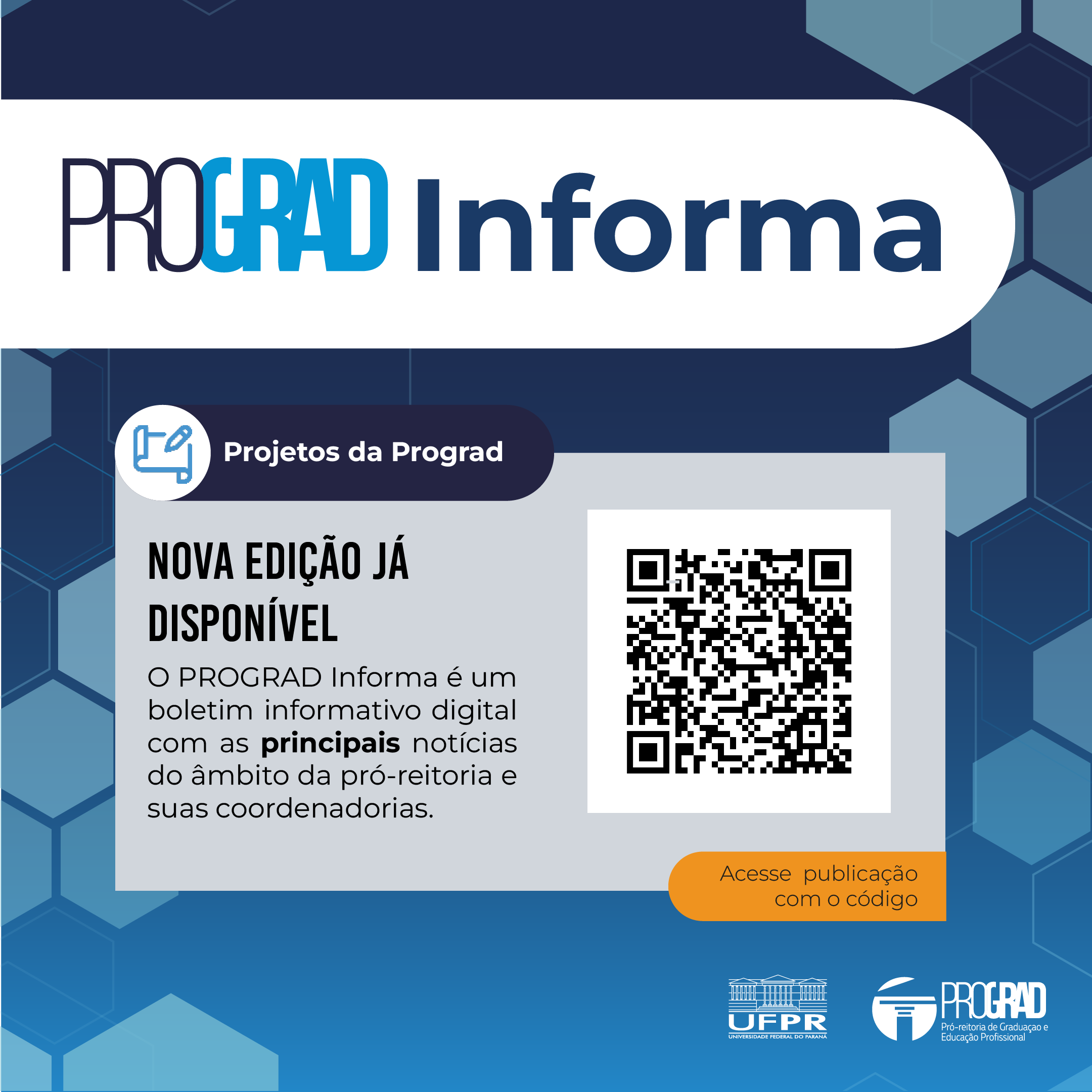 PROGRAD (Pró-reitoria de Graduação e Educação Profissional) da UFPR (Universidade Federal do Paraná), com o intuito de estreitar e aperfeiçoar cada vez mais sua comunicação com a comunidade acadêmica, publicou mais uma edição do PROGRAD Informa, um boletim informativo digital com as principais notícias do âmbito da pró-reitoria e suas coordenadorias. O meio de comunicação é publicado quinzenalmente e está disponível no site da PROGRAD (https://prograp.ufpr.br/prograd-informa/) bem como nas redes sociais da pró-reitoria. O PROGRAD Informa também é enviado por e-mail para as coordenações de curso, chefias de departamento e docentes da UFPR, via lista de endereços institucionais. Se mais algum membro da comunidade interna ou externa quiser assinar gratuitamente o boletim, basta preencher o formulário disponível em https://forms.office.com/r/cvgPLX15Yj.