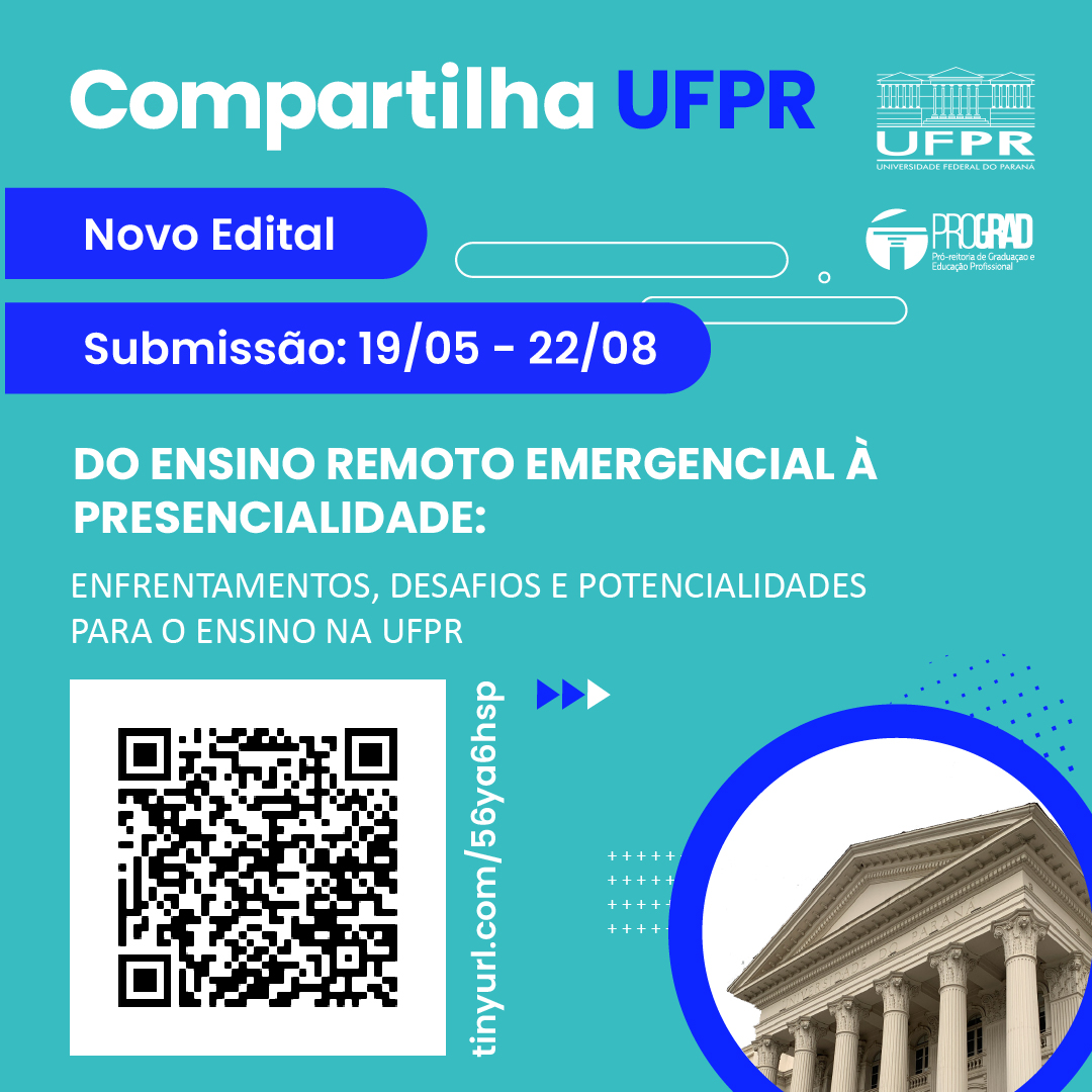 A Universidade Federal do Paraná (UFPR), por meio da Pró-Reitoria de Graduação e Educação Profissional (PROGRAD), torna públicas as normas para a submissão de originais para a publicação “Compartilha UFPR: desafios e possibilidades do ensino na UFPR”.